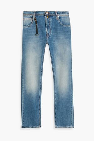 So, where does one find the perfect fit? For a worn-in, carefree, fresh-from-the-ranch look, consider distressed and disheveled styles. Amiri does a good game in rough, tough and ready versions. Versatility is the calling card of a great straight-fit jean, allowing us to think outside the box when it comes to outfitting. Bold knitwear (this N.Peal number is a worthy choice), worn with a mid-blue wash and a white sneaker feels cool, easy and classic.