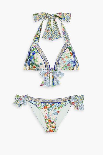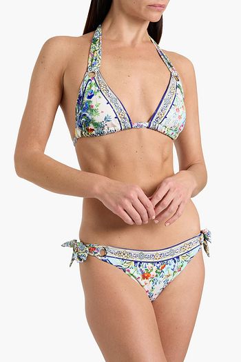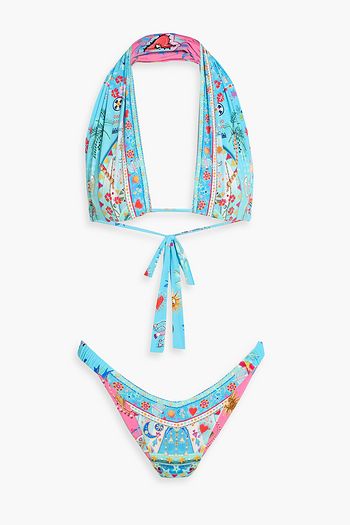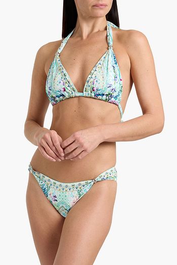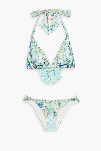 Crystal-embellished printed triangle bikini