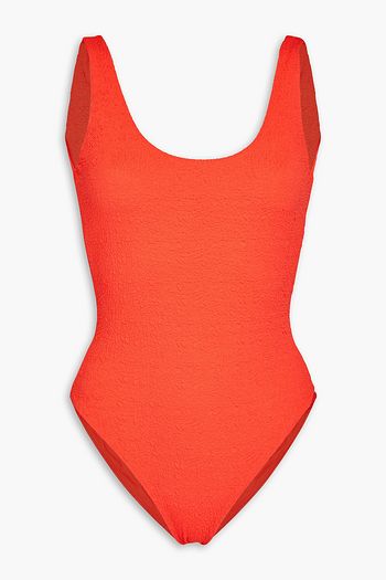Amber polka-dot stretch-crepe halterneck swimsuit