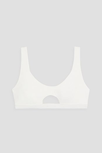 Striped stretch-jacquard underwired bikini top