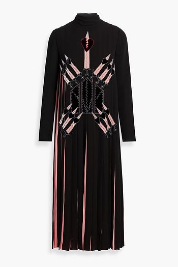 Embroidered pleated jacquard-knit mini dress