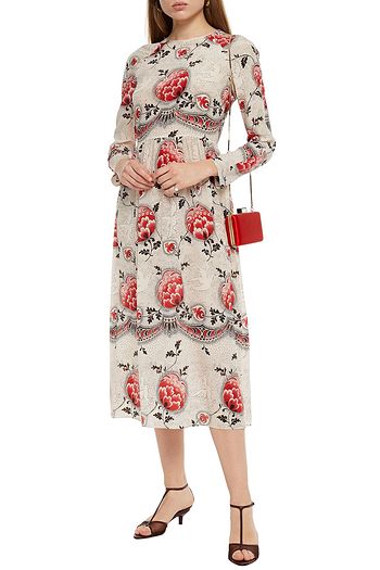 Printed silk crepe de chine midi dress