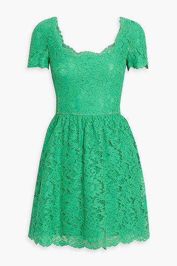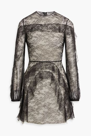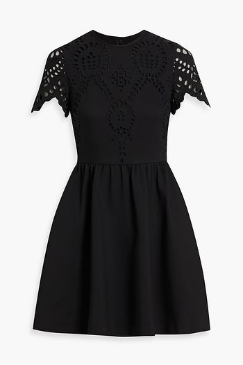 Bead-embellished guipure lace and cotton-blend faille mini dress