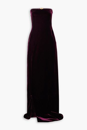 Ruched stretch-velvet maxi dress