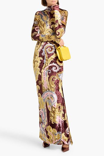 Libby satin-trimmed printed velvet maxi dress