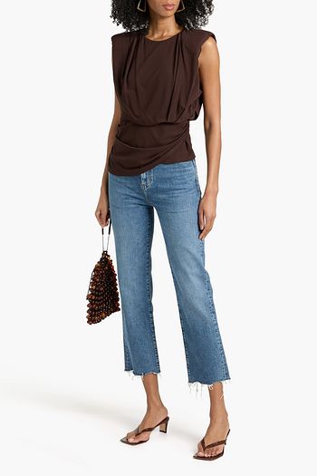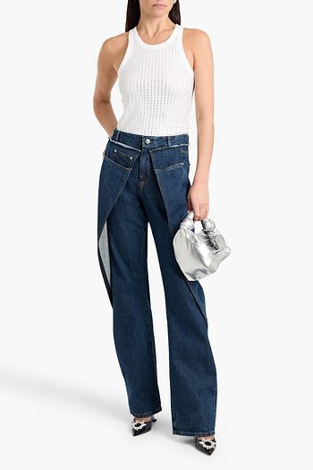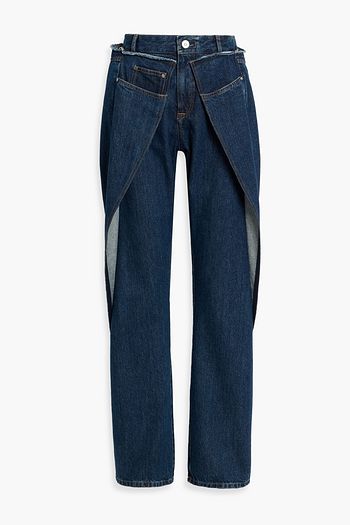 Pleated faille-paneled high-rise straight-leg jeans