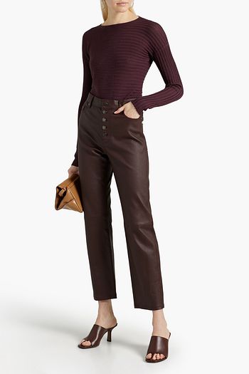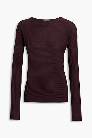 Point d'esprit-trimmed ruffled ribbed-knit sweater