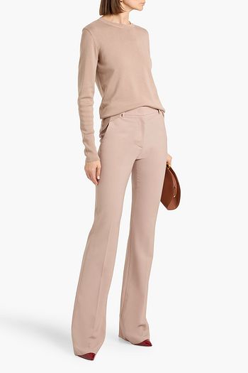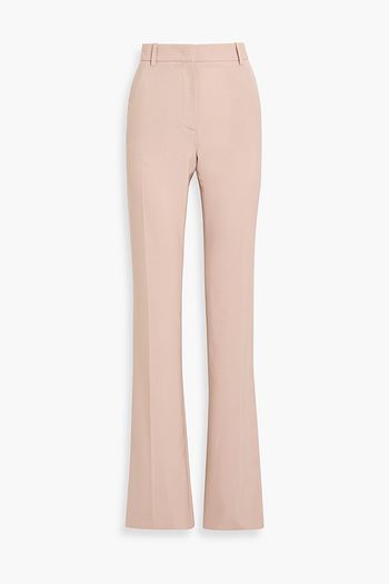 Embroidered button-embellished grain de poudre wool bootcut pants