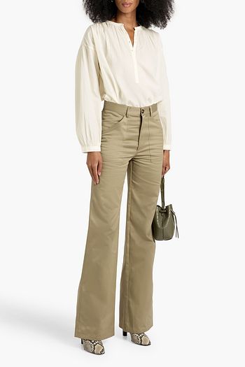 Embroidered grain de poudre wool and mohair-blend flared pants