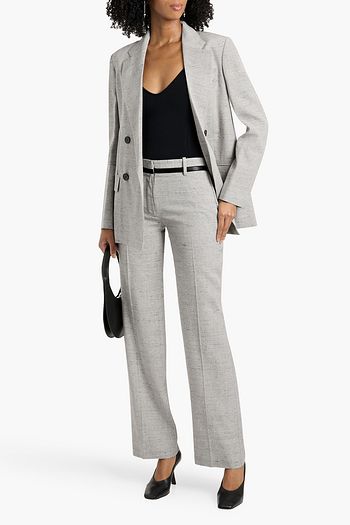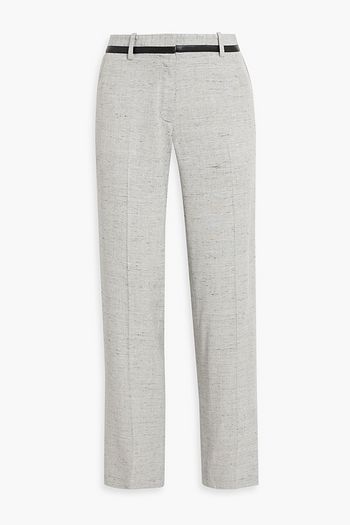 Pleated satin-trimmed wool-crepe straight-leg pants