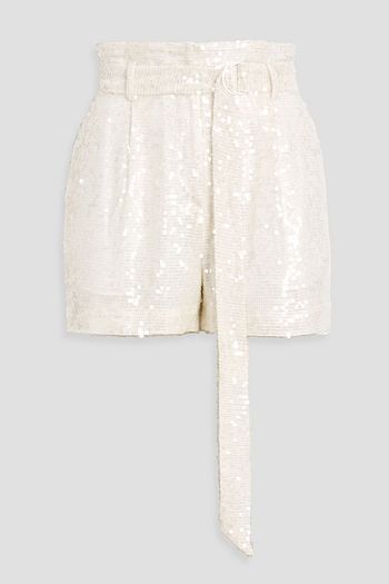 Skirt-effect metallic cotton-blend bouclé-tweed shorts