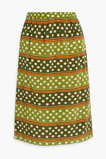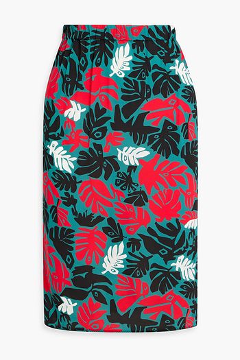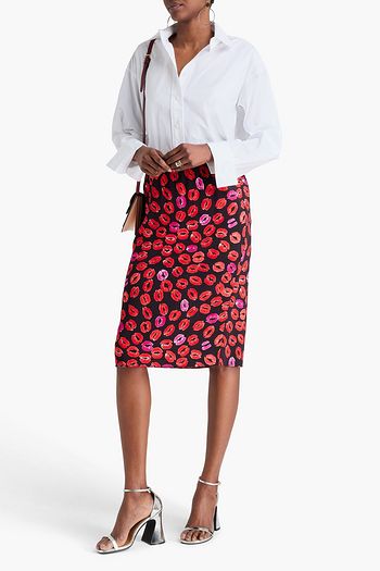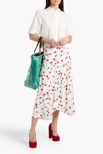 Floral-appliquéd cotton and silk-blend faille midi skirt