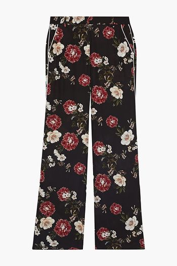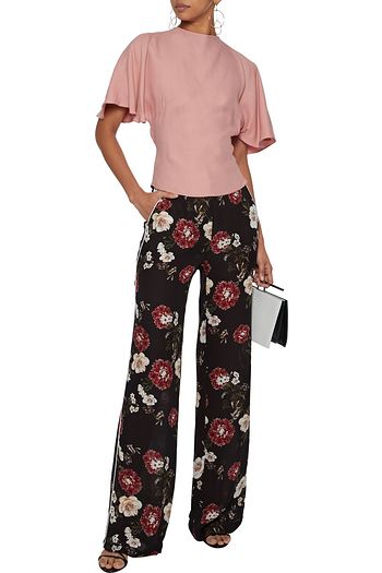 Floral-print silk crepe de chine wide-leg pants