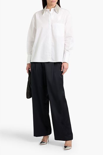 Faux pearl-embellished cotton-poplin shirt