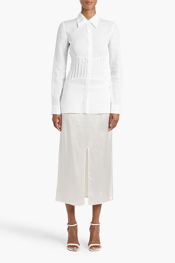 Embellished linen and silk-blend organza shirt