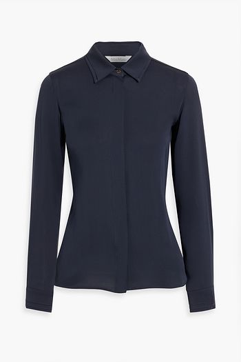 Bead-embellished striped cotton and silk-blend poplin shirt