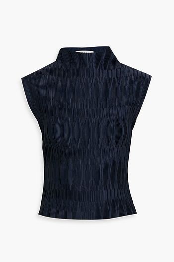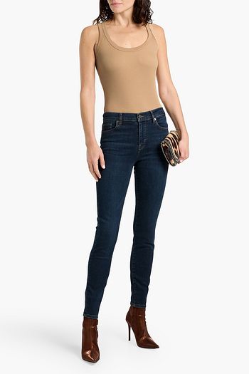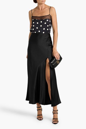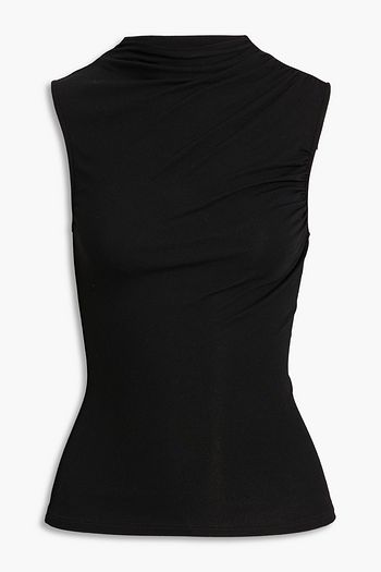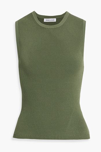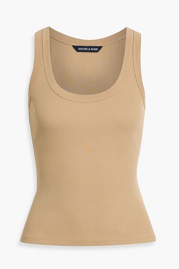 Silk satin-trimmed ribbed stretch-modal jersey tank