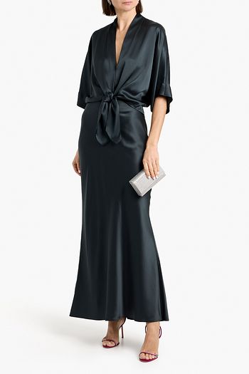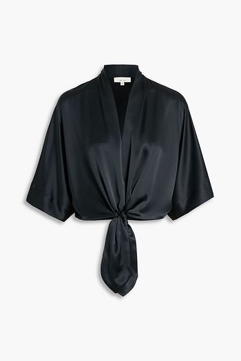 Paneled crochet, point d'esprit and crepe de chine blouse