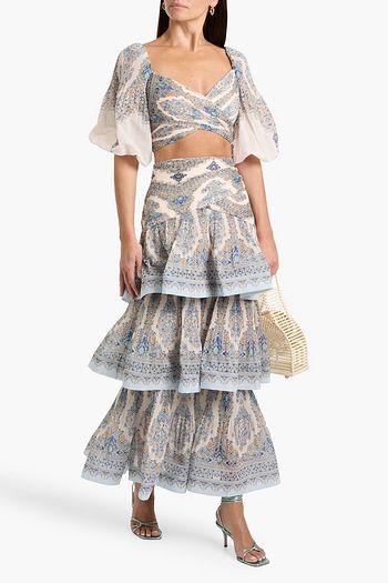 Manet ruffled floral-print cotton-blend jacquard blouse