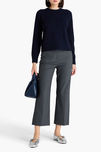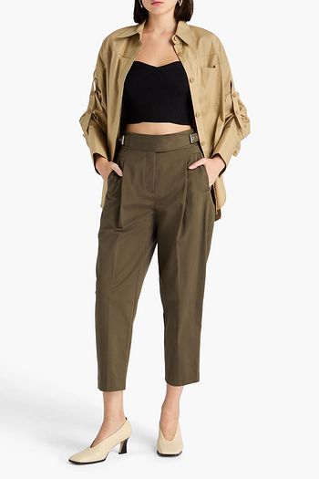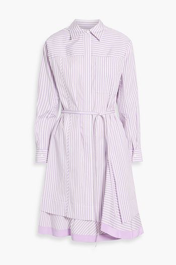 Organza-trimmed striped cotton-poplin midi shirt dress