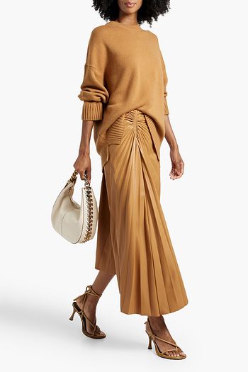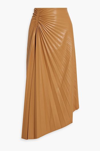 Tracy asymmetric plissé faux leather midi skirt