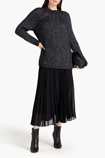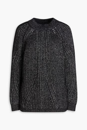 Metallic ribbed-knit sweater