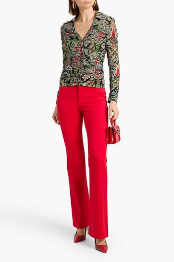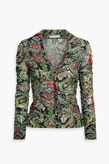 Portia ruched printed stretch-mesh shirt