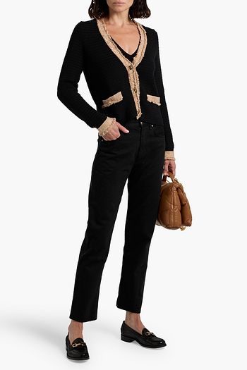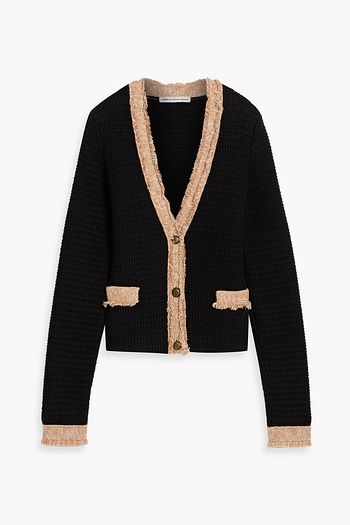 Metallic pointelle-knit cashmere and silk-blend cardigan