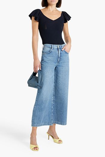 Ruffled ribbed-knit top
