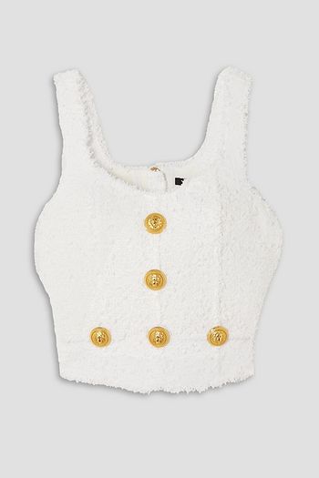 Cropped button-embellished tweed top