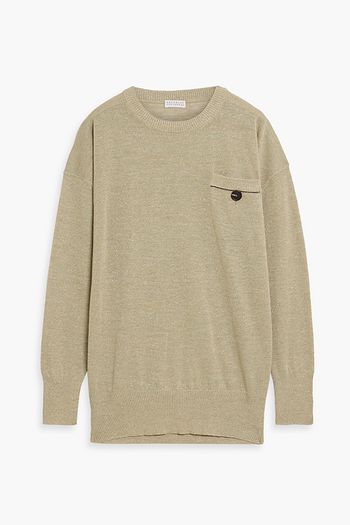 Sequin-embellished open-knit linen-blend midi dress