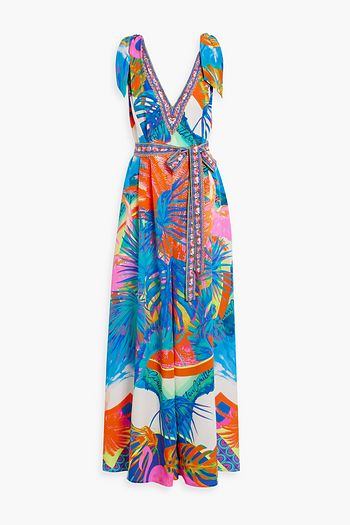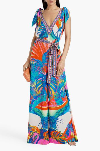 Crystal-embellished printed silk crepe de chine wide-leg jumpsuit