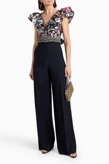 Crystal-embellished floral-print silk crepe de chine and chiffon blouse