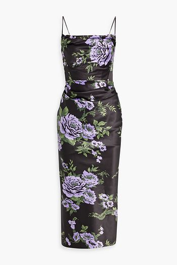 One-shoulder gathered floral-print silk-chiffon midi dress