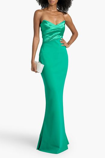 Bairei strapless satin-paneled stretch-jersey gown
