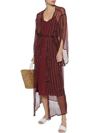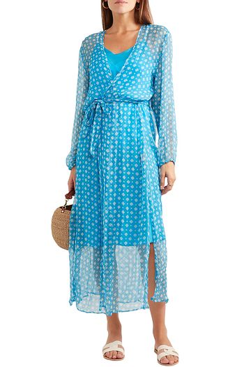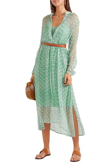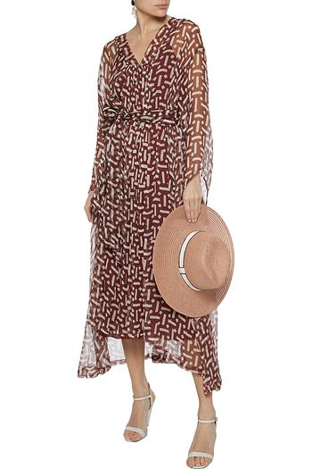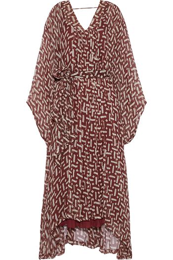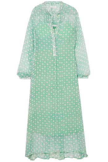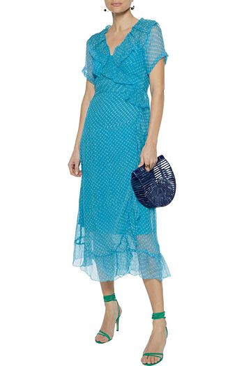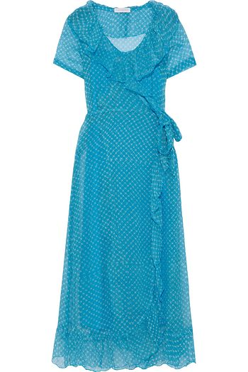 Kimi ruffle-trimmed printed silk-gauze midi wrap dress