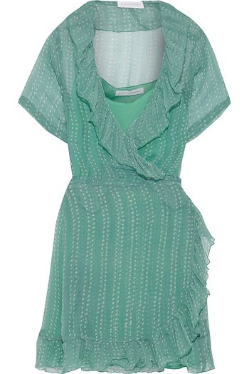 Kimi ruffle-trimmed printed silk-gauze mini wrap dress