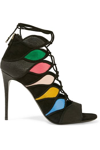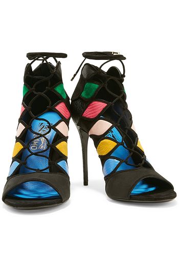 Felicity lace-up paneled suede and croc-effect leather sandals