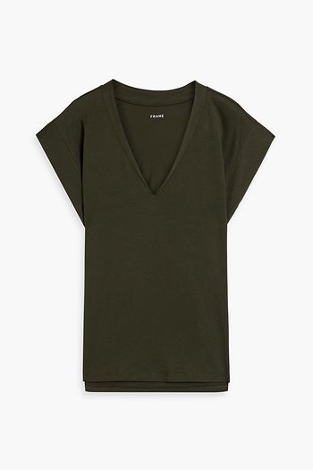 Silk satin-trimmed ribbed stretch-modal jersey tank