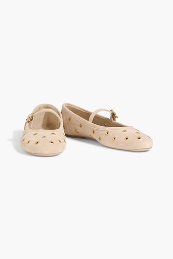 Embellished suede Mary-Jane flats