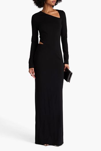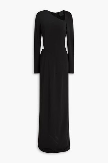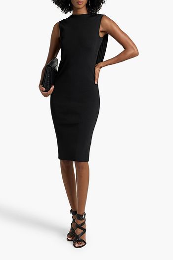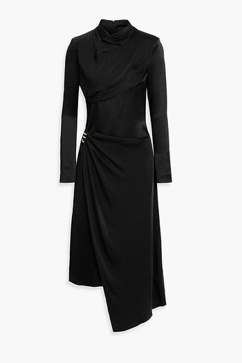 Wrap-effect crystal-embellished satin and crepe midi dress