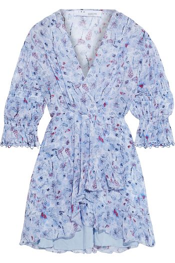 Lolly wrap-effect shirred printed chiffon mini dress