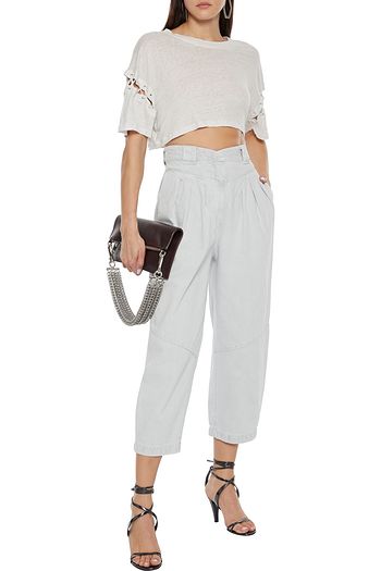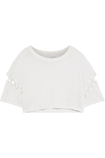 Savio cropped lace-up slub linen-jersey top