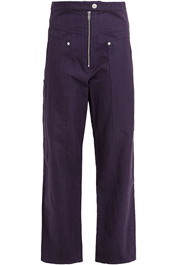 Peggy belted cotton and linen-blend canvas straight-leg pants