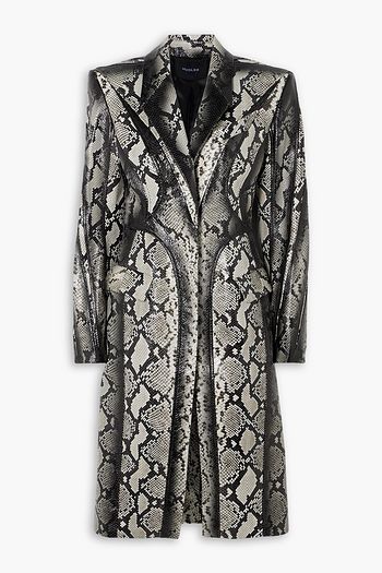 Paneled snake-effect leather coat