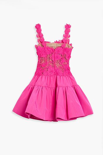 Guipure lace-paneled faille mini dress