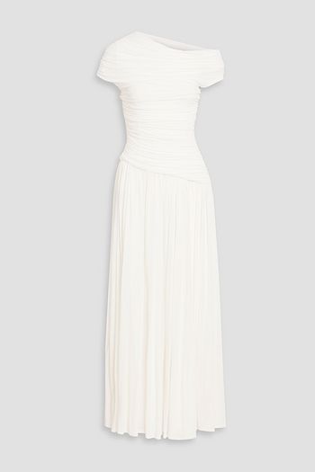 Allana pleated georgette and ribbed-knit midi dress