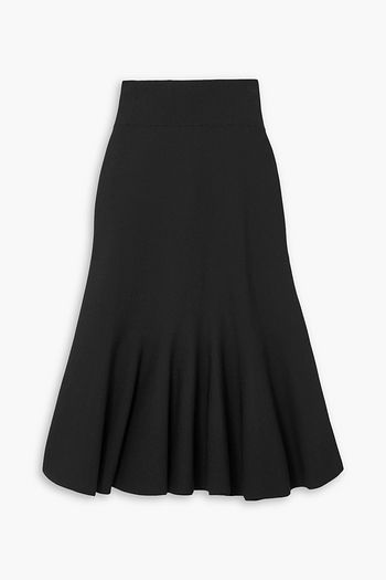 Asymmetric lace-trimmed grain de poudre midi skirt