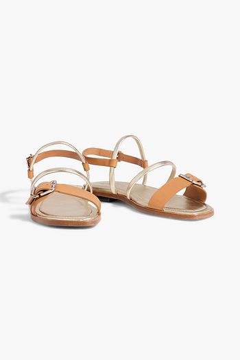 Embellished two-tone leather slingback sandals
