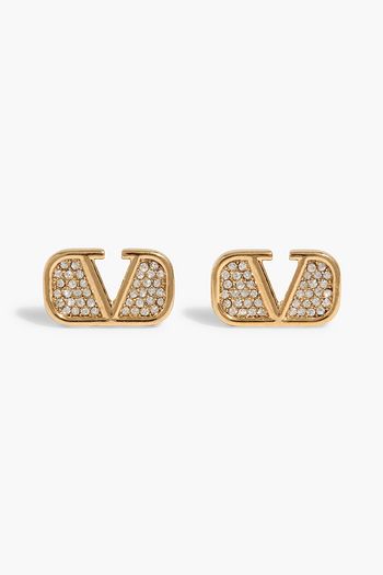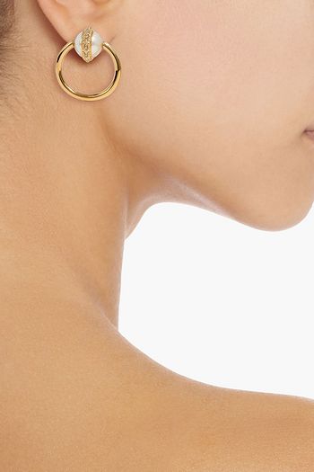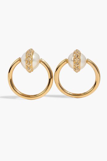 VLOGO gold-tone, faux pearl and crystal hoop earrings